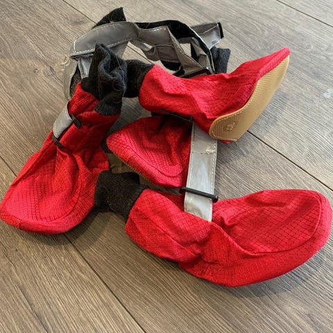 Modellen har forsterket stoff over poten og elastisk ribb rundt benet for bedre passform. Sokkerne festes med borrelåsrem rundt benet for å holde dem på plass under bruk. Egnet til å beskytte potene mot snø, is, salt og røft underlag på tur og trening.