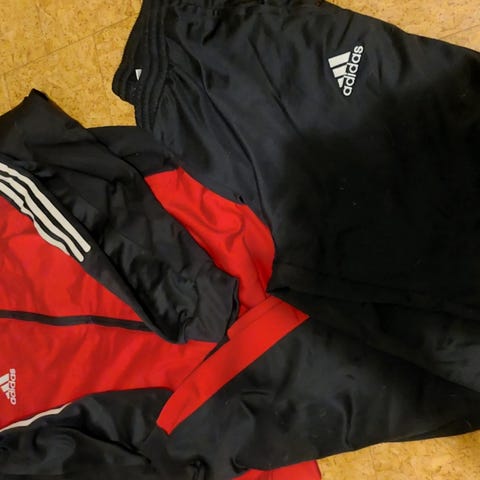 Joggedress for barn som er 164cm lange. Så godt som ny. Inneholder både jakke, langbukse og shorts. Buksene er merket XS 200 for alt.