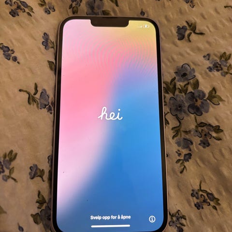 Selger min iPhone 14 med 128 GB. Batteriet er på 100 %, og alt fungerer som det skal.