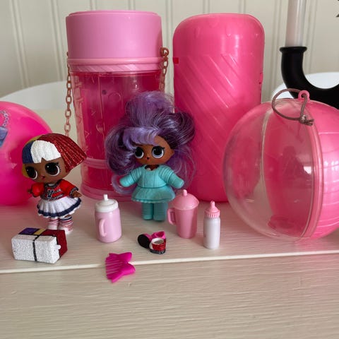 L.O.L. Surprise dukke med tilbehør. Settet inkluderer dukke, stor rund kapsel/ball og flere små tilbehørsdeler som klær, sko, hårbøyle og drikkeflaske. Dukken har glitterdetaljer og pastellfargede klær. Dukken kan også gråte eller spytte. Kapselen kan brukes både til oppbevaring av dukken og som del av leken. Egnet som samlefigur og rollelek for barn som liker L.O.L. Surprise-leker.