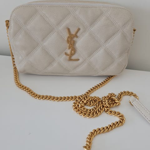 YSL - LIGNENDE skulderveske i svart skinn for dame. Vesken har gullfargede metallkjeder og YSL-logo i front. Modellen bæres over skulderen med dobbel kjedestropp kombinert med skinn. Lukkes med magnetknapp på toppen. Leveres med dust bag, som vises på bildene. Egnet som hverdagsveske eller til mer formelle anledninger, med plass til det mest nødvendige som lommebok, mobil og småting.
