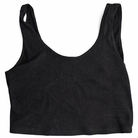 Selger en svart ribbestrikket singlet fra NA-KD i størrelse XS.