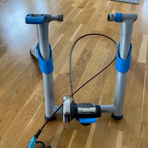 Sykkelrulle for innendørs bruk med justerbar motstand. Rullen festes til bakhjulet på sykkelen, og passer til sykler med standard bakaksel. Motstanden reguleres via en hendel som monteres på styret, slik at belastningen kan justeres under sykling. Egnet for trening inne med vanlig sykkel når utendørsforholdene ikke ligger til rette for sykling.