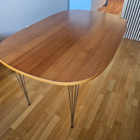 Bordet er stabilt og i god stand, med kun normal bruksslitasje. Beinene kan skrus av for enklere transport (se bilde).