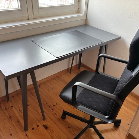 Kontorbord/skrivebord + kontorstol selges samlet da det skal byttes ut. Godt brukt med lite bruksmerker. Selges samlet for 500kr. Kom gjerne med bud☺️