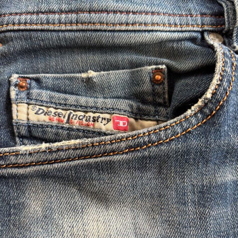 Tommy Hilfiger jeans i denim - unisex. Buksen er blå med kontrastsømmer og klassiske fem lommer, inkludert myntlomme med liten logo. Størrelse M med livvidde W28. Materiale i denim som gir et klassisk uttrykk og passer til hverdagsbruk.