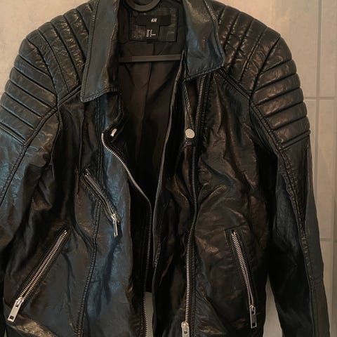 Skinnjakke i fargen dark green selges, Kun brukt én gang. Jakken har hatt et lite hull som er profesjonelt reparert – dette er ikke synlig nå og påvirker ikke bruken. Den passer en str S/M
