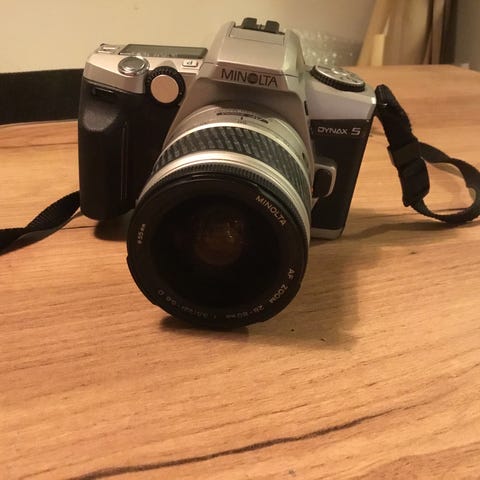 Minolta Dynax 5 speilreflekskamera med Minolta AF 28–80mm zoomobjektiv.