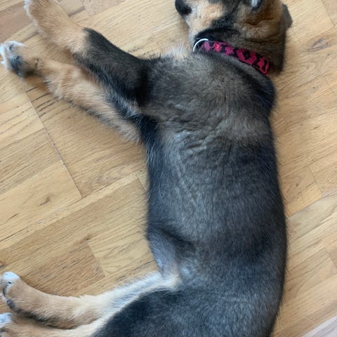 Vi har også trent lydighet og andre aktiviteter som å gjemme godbiter etc. for å så søke etter de.