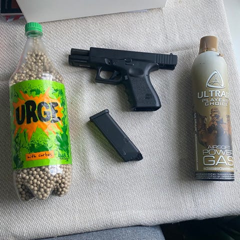 Selger en Glock 19 gassdrevet 6mm, følger med ca 7500-7000 BBs og 27 nye 12g patroner🤩.