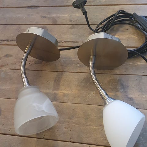 Flotte vegg lamper i smijern med glasskuppel gies bort med pærer