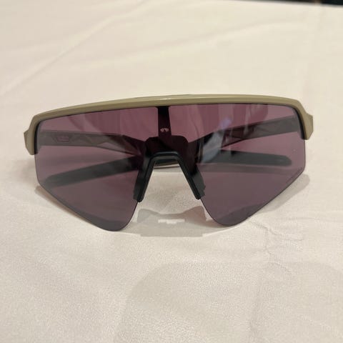 Oakley solbriller unisex med turkis ramme og store, sammenhengende speilglass. Modellen har rette stenger med svart avslutning og Oakley-logo på siden. Skjermformet glass gir bredt synsfelt og dekning rundt øynene. Passer til både hverdag og ulike utendørsaktiviteter for voksne i unisex-størrelse.