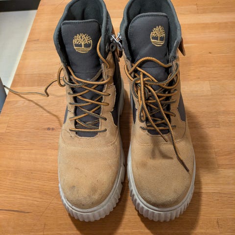 Timberland støvler i størrelse 41. Klassiske snørestøvler i svart farge med kraftig yttersåle for godt grep. Overdelen fremstår som glatt og robust, og støvlene har polstret ankelparti for økt komfort. Passer til bruk i hverdagen og i kjøligere værforhold.