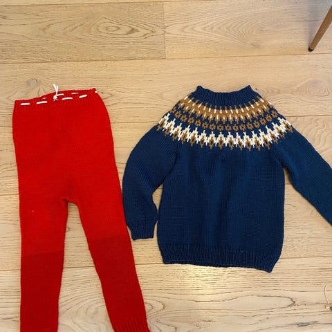 Strikkagenseren er ikke synlig brukt. Den ble rask liten desverre 🥹 Tynn og behagelig ullgenser.
