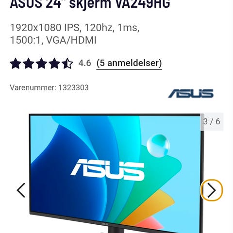 Asus gaming monitor med skjermstørrelse på 24 tommer. Skjermen er egnet til bruk med PC/XBOX/PS5/PS4, og passer til både spilling og generell bruk. Monitoren har rektangulær skjerm med tynn ramme og står på en justerbar skjermfot. Skjermen er 100HZ med et flott IPS panel med mange tilgjengelige settinger. Og blålysmodus for bedre øyehelse.