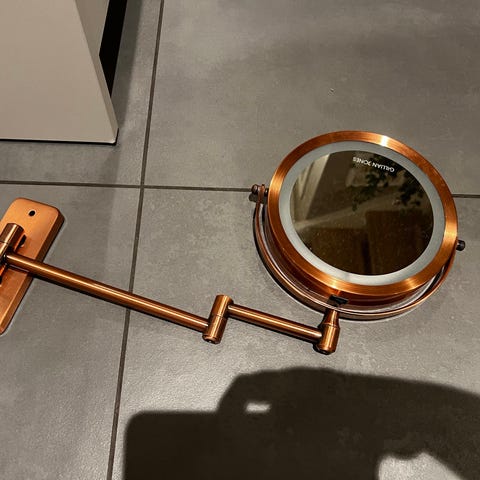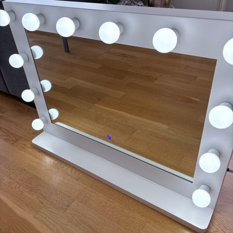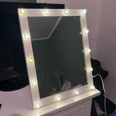 Selger dette flotte sminkespeilet da hengslene (?) er noe løse, så selve speilet kan vippe litt og står ikke helt vertikalt. Har prøvd å utbedre og stramme skruene, men de løsner gradvis opp igjen. Selges billig om noen har lyst å prøve seg på å fikse den, evt. om speilet kan stå inntil (eller på) en vegg. Ellers fungerer lysene og slikt som de skal 😊