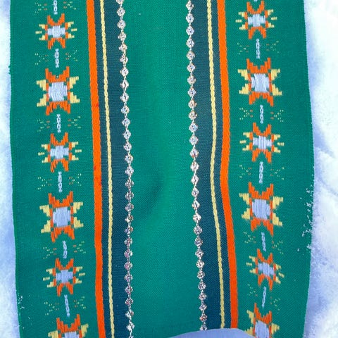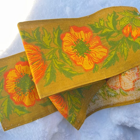Trykket blomst på jutevev fra 1960 tallet