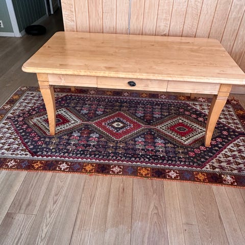 Salongbord i furu. Pent brukt. Gis bort ved henting