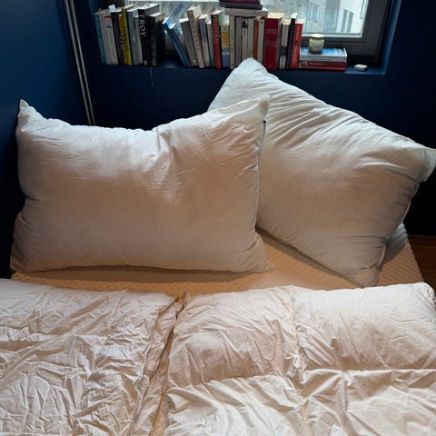 IKEA Vildkorn pute med grått putetrekk.