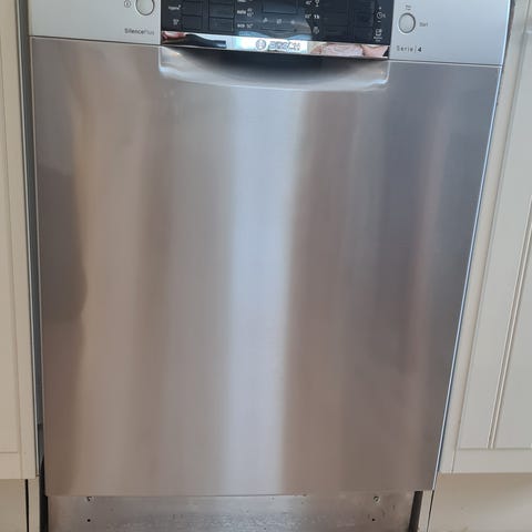 Oppvaskmaskinen er integrerbar under benk og har front i rustfritt stål. Innvendig har den kurvløsning med over- og underkurv for tallerkener, glass, bestikk og kjeler. Det er standard spylearmer og filterløsning i bunnen.