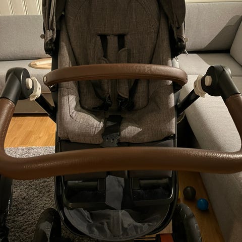 Komplett med liggedel og sittedel. Leveres også med Maxi Cosi bilsete med adapter til Stokke barnevogn.