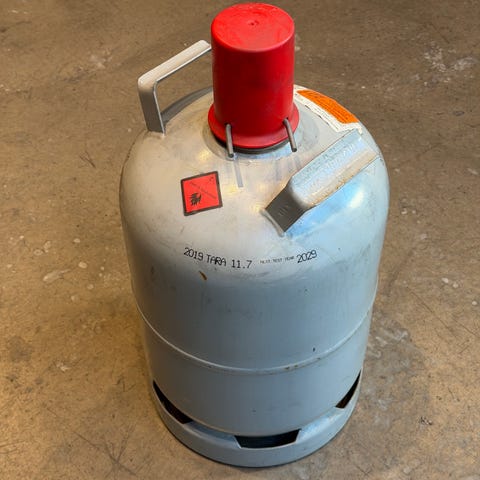 Flasken kan fylles og evt bytte til annen type gas flaske hos