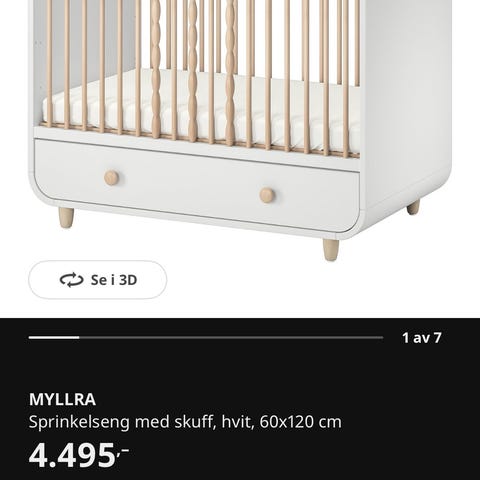 Nederst i sprinkelsenga er det en romslig skuff der du kan oppbevare dyner, leker og ekstra sengetøy.