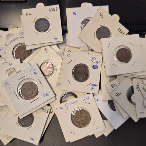 Selger en liten samlelot med originale nederlandske kobbermynter fra 1830- til 1890-tallet.