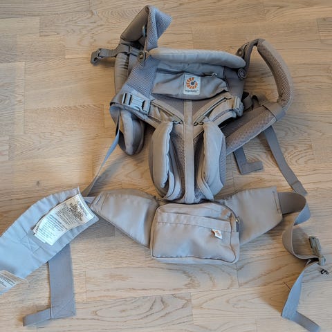Bæreselen har polstrede skulderstropper og bredt hoftebelte som fordeler vekt. Den har hette som kan festes med trykknapper, samt frontlomme. Innsiden er lys og polstret for økt komfort for barnet.