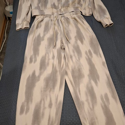 H&M joggedress for jente i størrelse 152. Sett med genser og bukse i brun farge. Plagget er laget i bomull, med myk og behagelig kvalitet. Buksen har strikk i livet for bedre passform. Egnet som hverdags- og fritidstøy for barn i alderen ca. 11–12 år, avhengig av høyde og kroppsmål.