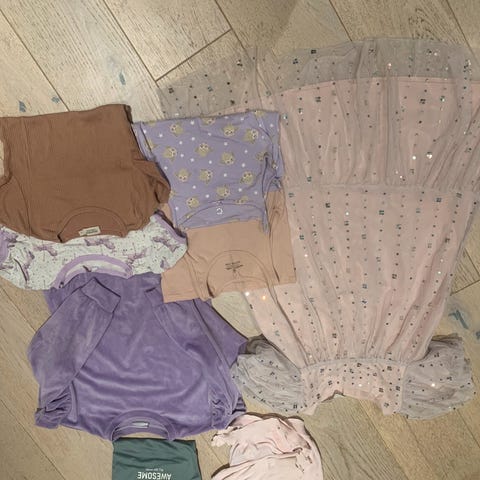 Kjole, tykk cardigan, fleece-rosa genser og 2 gensere selges for 90,- samlet. 3 av overdelene er knapt brukt og fremstår som nye. Fleece og cardigan- jakken har vært to favoritter og vært mer i bruk..