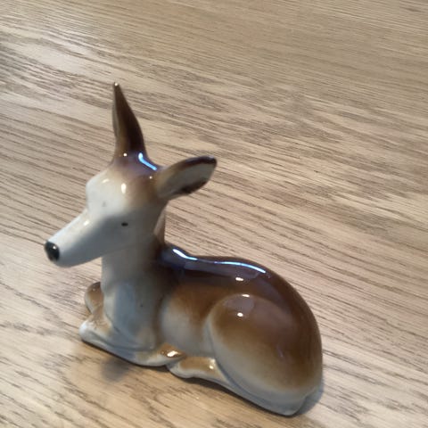 Søt vintage figur av Bambi/rådyr i glasert porselen.