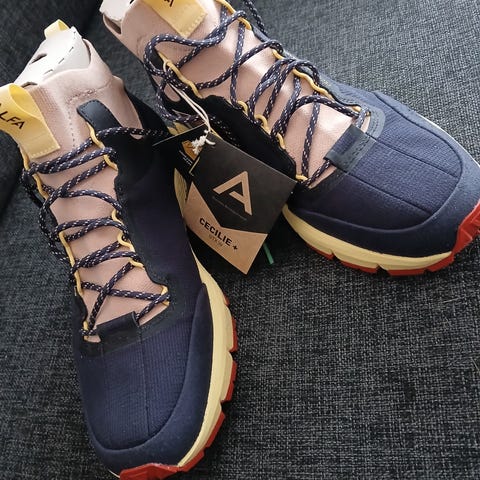 Prisvinnende fritidssko/tursko. Flere "tekniske" og ergonomiske tilpasninger/løsninger for å gjøre skoen mest mulig behagelig. Gore-Tex membran. Følger med beskrivelse av skoen med mye god info. Ny og ubrukt. Hentes hjemme hos meg eller etter avtale. Ha en fin dag.