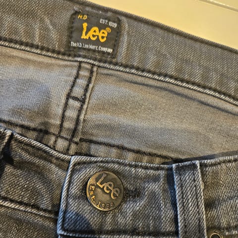 Lee Carol jeans for dame i svart denim. Buksestr 29/33, normal lengde og smal passgorm med litt stretch. Kun brukt tre ganger, da fen er litt liten til meg