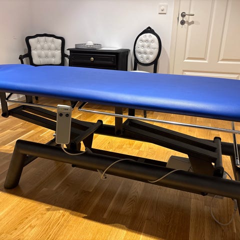 Elektrisk behandlingsbenk hvit med regulerbar høyde og seksjoner