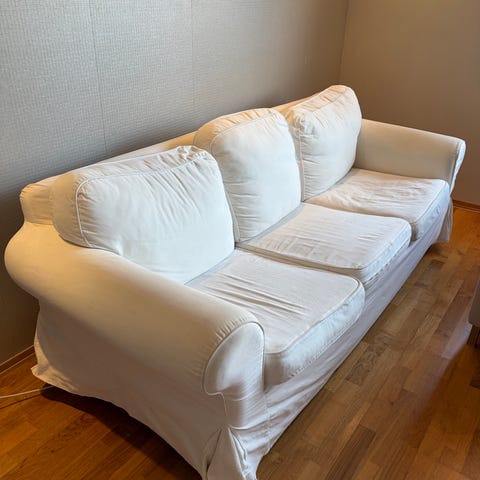Fin og komfortabel sofa fra IKEA. Putetrekk kan vaskes i maskinen på 60 grader. Ny pris 6000,-
