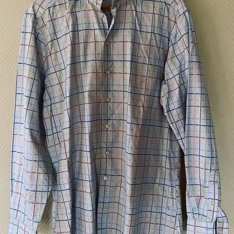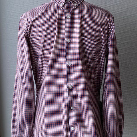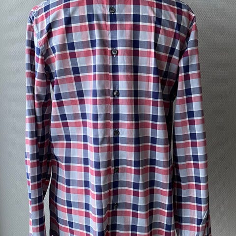 Paul & Joe skjorte for herre. Skjorten er flerfarget med et mønstret trykk i hovedsakelig røde, hvite og mørke toner. Laget i bomullsmateriale. Klassisk krage, lange ermer og mansjetter med knapper. Passer til bruk både til hverdags og mer formelle anledninger, kombinert med bukse eller jeans.