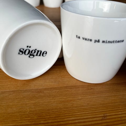 Selger 5 stk SÖGNE krus med sitater fra Trygve Skaug. Selges samlet for 300,-