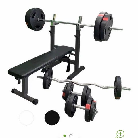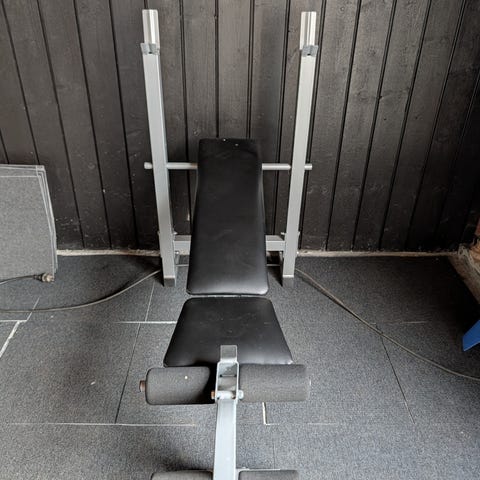 Selger både benk og stativ, stang og vekter til feks benkpress.