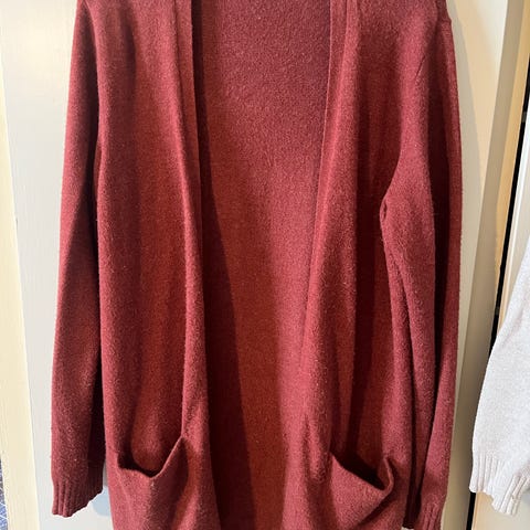 Strikket struktur med lange ermer og to lommer foran. Egnet som lett ytterlag eller som ekstra lag innendørs.