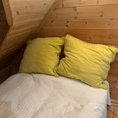 Godt brukt med slitasje og noen flekker (se bilder), men kan fortsatt brukes som ekstra puter, til hytte, DIY-prosjekter eller som liggeplass til kjæledyr.