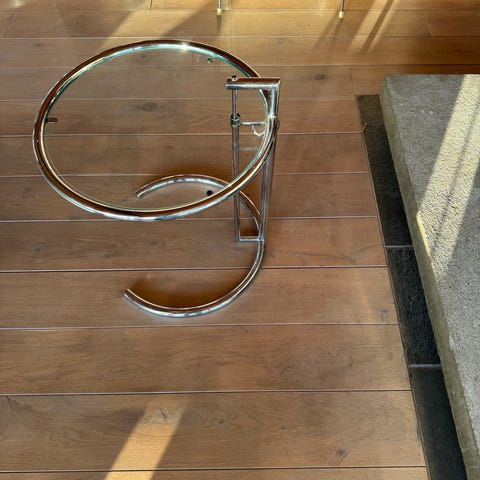 Materialer: Understell i sølvfarget metall og rund bordplate i herdet glass.