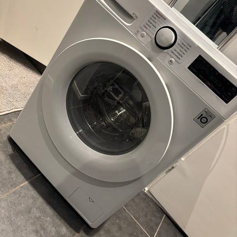 LG ThinQ DirectDrive kombinert vask/tørk med kapasitet 7 kg vask og 5 kg tørk i hvit utførelse.
