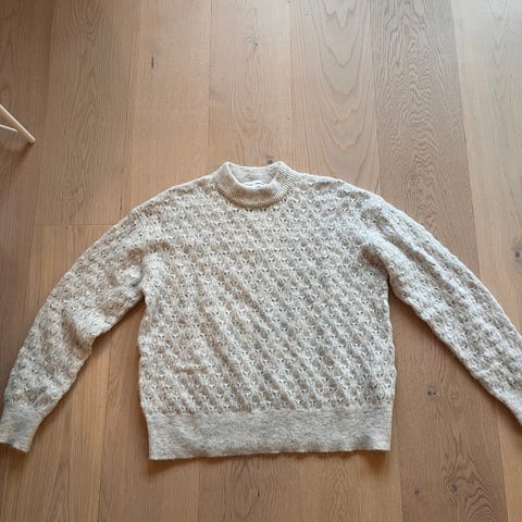 Selger en rykende fersk genser som er av pinnene. Selges fordi den var for liten. Tipper den passer XS’/S, kommer an på hvor oversize du vil ha den. Fargen er hvit og pudder rosa