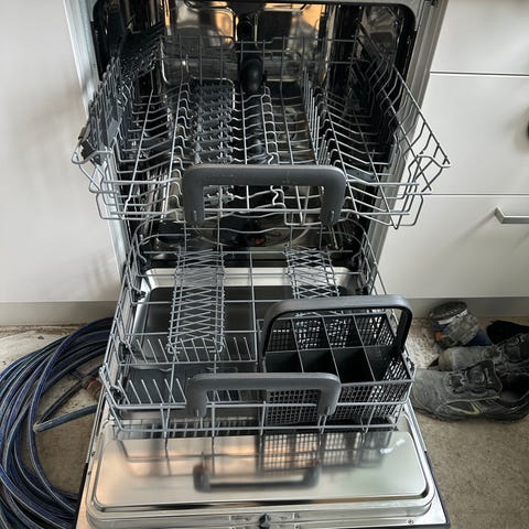 Vi bytter ut kjøkkenet og gir derfor bort vår Bosch integrert oppvaskmaskin. Modellen er beregnet for innbygging bak kjøkkenfront, med betjeningspanel øverst på døren. Maskinen har innvendig stålbunn og standard kurvløsning med overkurv og underkurv for tallerkener, glass og bestikk.