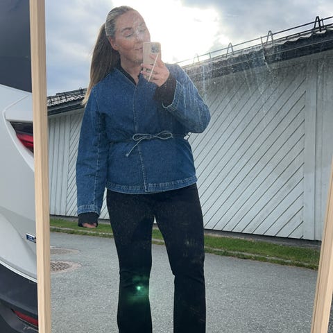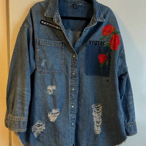denim jakke står str M,men mer som XL 180kr
