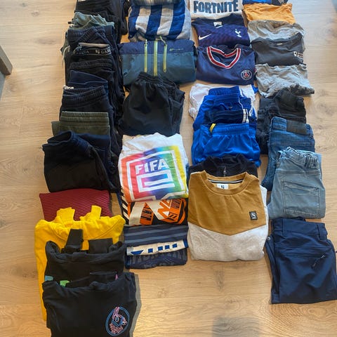En av genserne og tskjorta har noen flekker men sender de allikevel med til feks bhg.