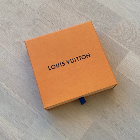 #LouisVuitton #LV #eske #box #oransje #orange #bånd #papp #sko