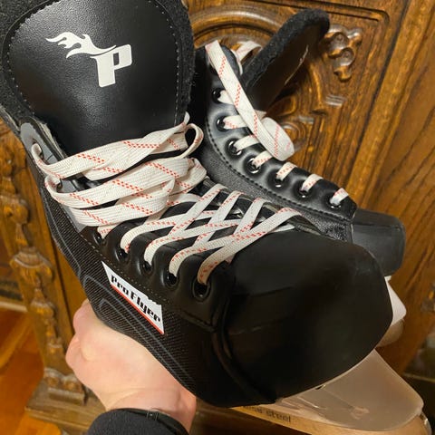 Pro Flyer Coolfighter ishockeyskøyter for barn i størrelse 35. Modellen har hard yttersko i svart med rosa og hvite detaljer, samt justerbare spenner for å feste skøytene godt rundt foten. Skøytene leveres med stålsko tilpasset ishockeybruk. Egnet for barn som trenger stabile og støttende skøyter til bruk på isbane eller skøyteis.