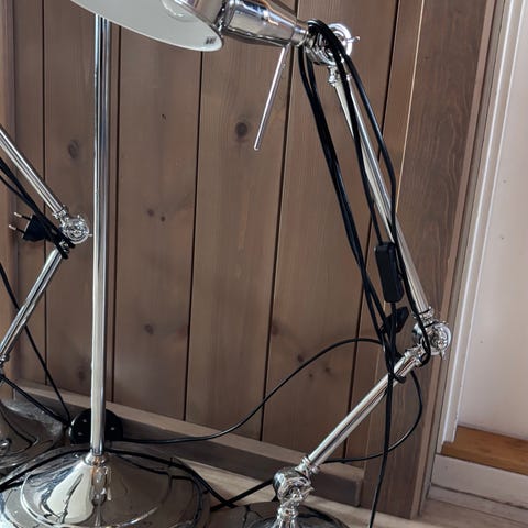 Hvit Luxo lampe i god stand selges, perfekt for verksted, kontor eller som nattlampe eller lignende. Lampen er i god stand, av norsk design og kan hentes i Oslo. Bordfeste kan følge med for 150kr ekstra.